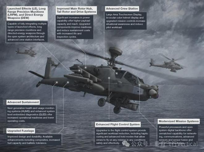 波音公司于 2023 年与陆军签订了最新的“阿帕奇卫士”多年期采购合同,该合同计划持续到 2028 年。波音公司还计划在 2030 年代展示升级版的现代化“阿帕奇” - 机翼加长,可部署“发射效应”(Launched Effects,发射型无人机系统)。